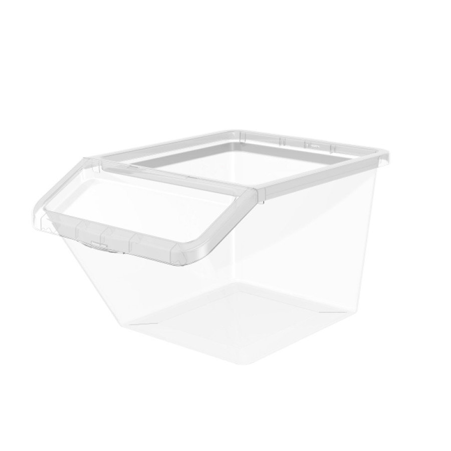 A tárolónak van egy ferde oldala is, alul van szerelve, csuklós fedéllel, hogy ki tudjuk venni a tartalmát,anélkül, hogy felemelné a teljes fedelet vagy a rajta lévő edényt.