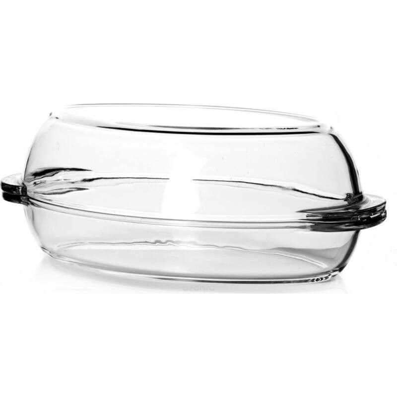 Ovális tepsi fedővel 4 l (tartály 2,2 l + fedél 1,8 l) főzőüvegből készült, hossza 34 cm, szélessége 19,6 cm, magassága 14,4 cm. A sütőedény kemény boroszilikát üvegből készül, amely mechanikailag és termikusan is nagyon tartós (hőmérséklet tartomány -50 és / 500 fok között). Előnye a hosszú élettartam, a higiénikus biztonság (az üveg sima és nem porózus), a könnyű karbantartás (mosogatógépben mosható), az üveg pedig környezetbarát anyag.