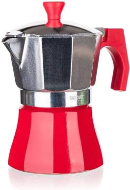 A CAMPI Red a Banquet-től egy 3 adagos mokka kávéfőző az ízletes, erős kávé otthoni elkészítéséhez. Alkalmas gáz-, elektromos és kerámia főzőlapokon való használatra. Az alumíniumtest már néhány csésze után patinát kap, ami elengedhetetlen a kávé megfelelő ízéhez.