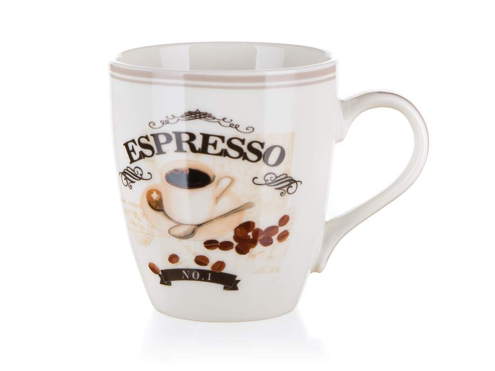 ESPRESSO feliratú, kávés mintájú kerámia bögre.