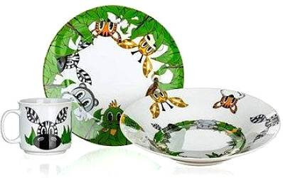 - A szett tartalma: lapos tányér, mély tányér, bögre