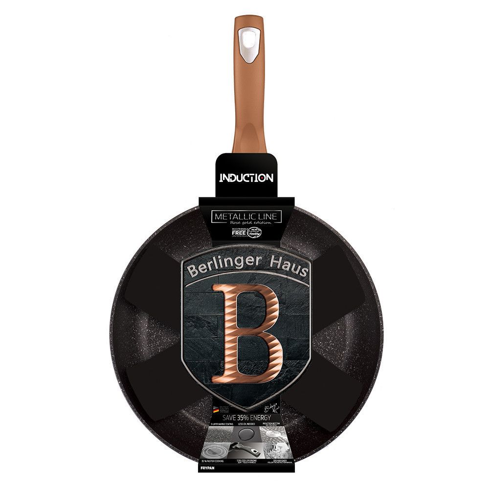 A Berlinger Rose Gold Collection edényei kovácsolt alumíniumötvözetből készülnek, 3 rétegű tapadásmentes márvány bevonattal, így kevés zsiradék használatával is könnyedén elkészítheti kedvenc ételét. Az ergonomikus puha fogantyúk luxus érzetét kölcsönzi használójának, továbbá a TURBO indukciós talp lehetővé teszi, hogy ételei energiatakarékosan és gyorsabban elkészüljenek. Mindenféle tűzhelyhez és indukciós főzőlaphoz alkalmas, mosogatógépben mosható.