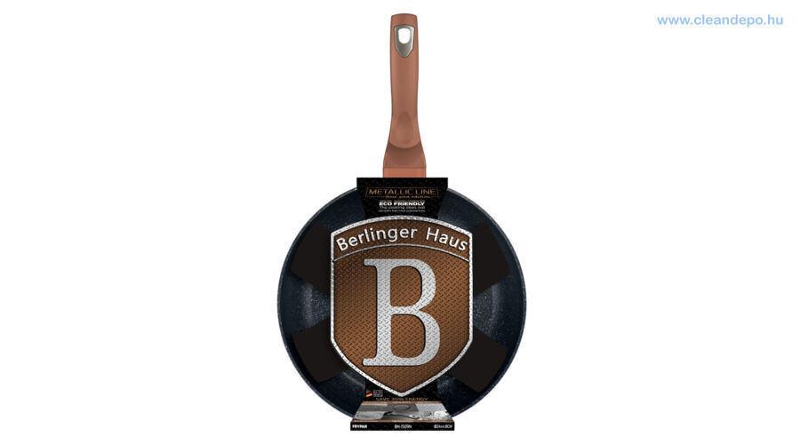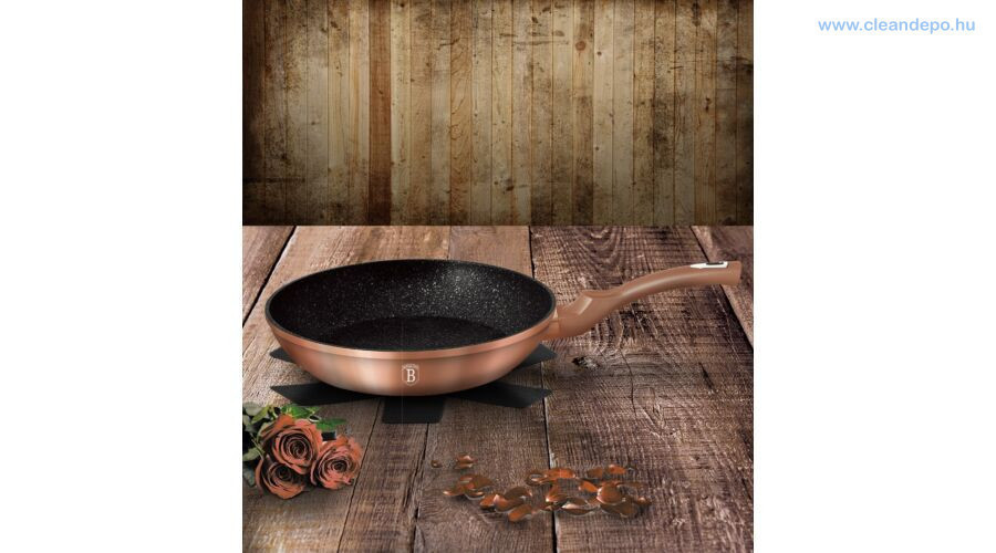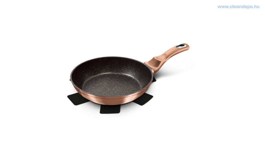 A Berlinger Haus Metallic Rosegold Line kovácsolt alumíniumból készült serpenyő három rétegű márványbevonata és a turbó indukciós talp lehetővé teszi, hogy ételei energiatakarékosan és gyorsabban elkészüljenek.