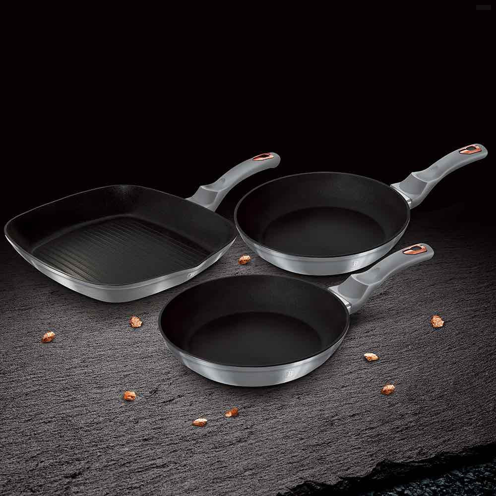 A szett tartalma három különböző méretű serpenyőt tartalmaz: Ø20*4.2 cm, Ø24*5.0 cm és Ø28*4,1 cm. Ezek a méretek ideálisak szinte minden főzési feladathoz.