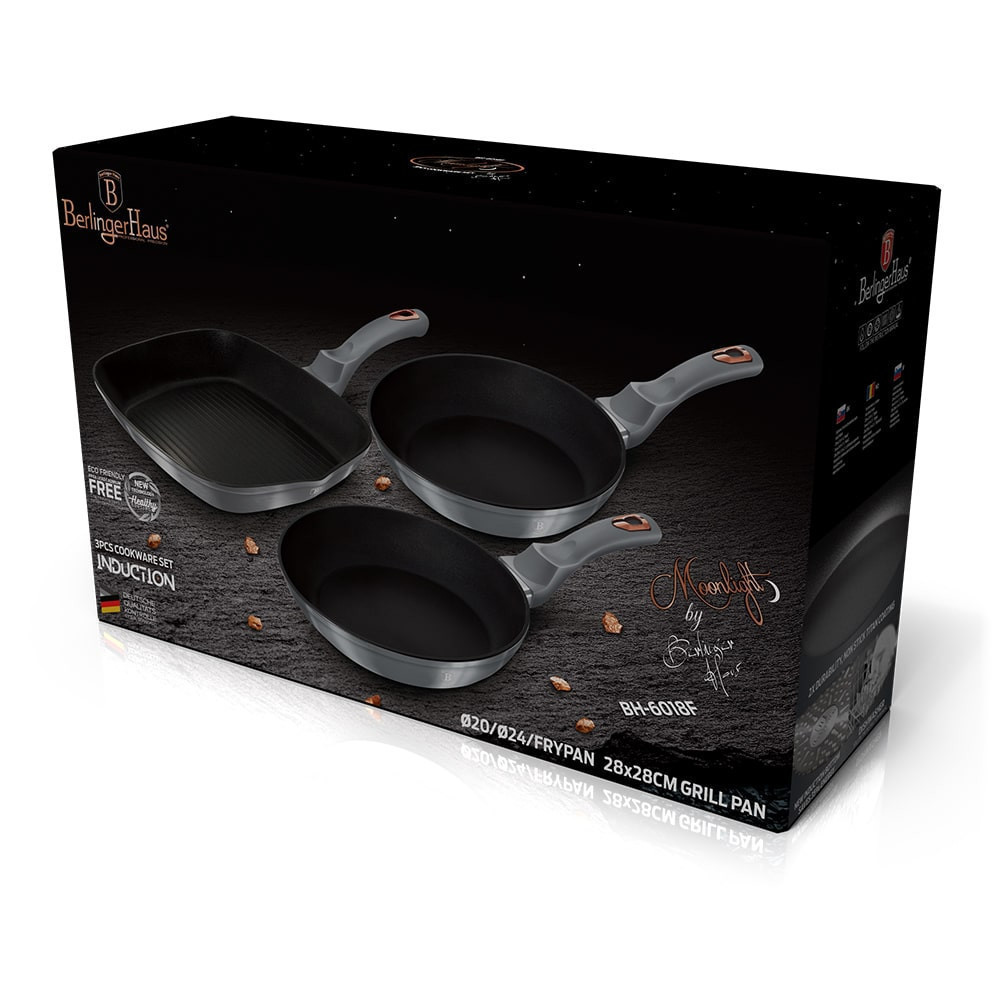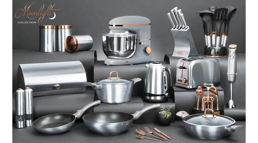 A Moonlight Collection szett nem csak praktikus és tartós, de elegáns stílust is kölcsönöz a konyhának. Készítsen finom ételeket ebben a szettben, és élvezze az egyszerű használat és tisztítás előnyeit. Az egységes színkoncepció lehetővé teszi, hogy konyháját harmonikusan összehangolja a BerlingerHaus többi termékével.