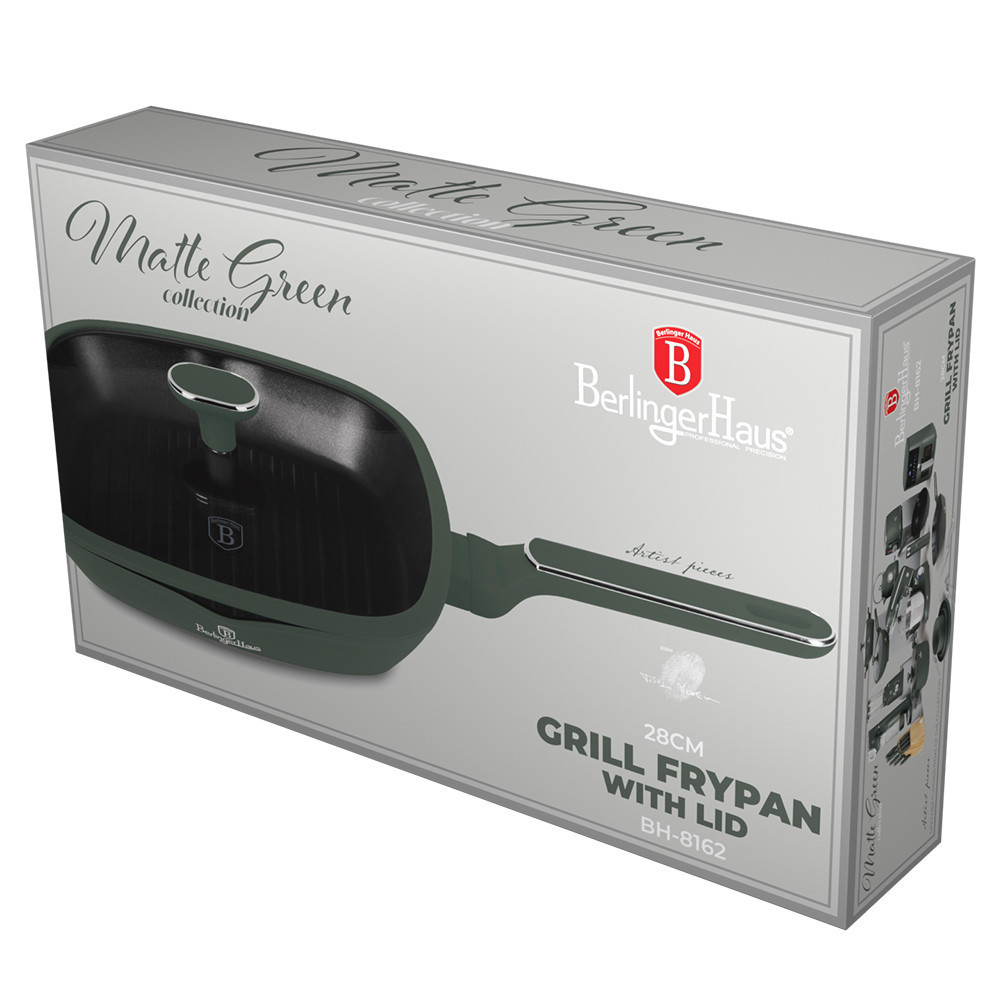 Alakítsa át főzését a Berlinger Haus BH8162 mattzöld tetős grillserpenyővel , amely nélkülözhetetlen kiegészítője konyhájának az egészségesebb, ízesebb grillezéshez. Ez a 28 cm-es, 2,1 literes grillserpenyő a prémium anyagokat, az innovatív funkciókat és a stílusos kialakítást ötvözi, hogy kivételes teljesítményt nyújtson minden grillezési igényhez.
