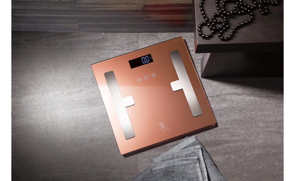 A Berlinger Haus Okos Személymérleg egy modern, digitális mérleg, amely nemcsak súlymérést, hanem részletes testösszetétel-elemzést is kínál. Elegáns, Rose Gold színösszeállítása stílusos kiegészítővé teszi bármely fürdőszobában, miközben fejlett technológiájával segít nyomon követni egészségi mutatóit.