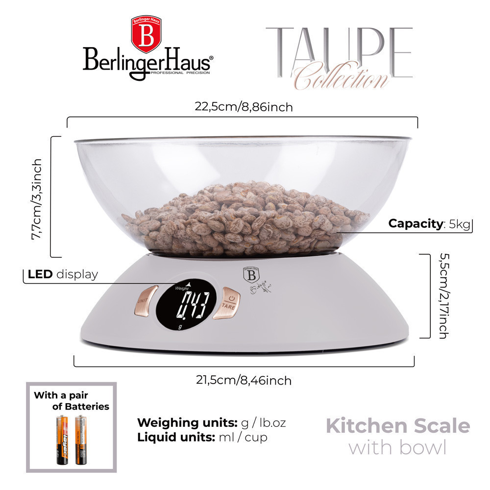 Berlinger Haus Taupe Collection digitális konyhai mérleg tállal BH-9616