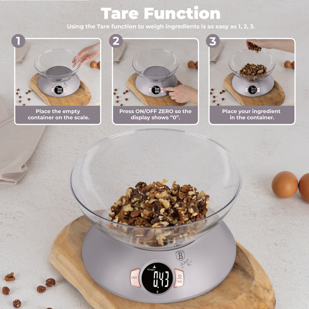 Berlinger Haus Taupe Collection digitális konyhai mérleg tállal.