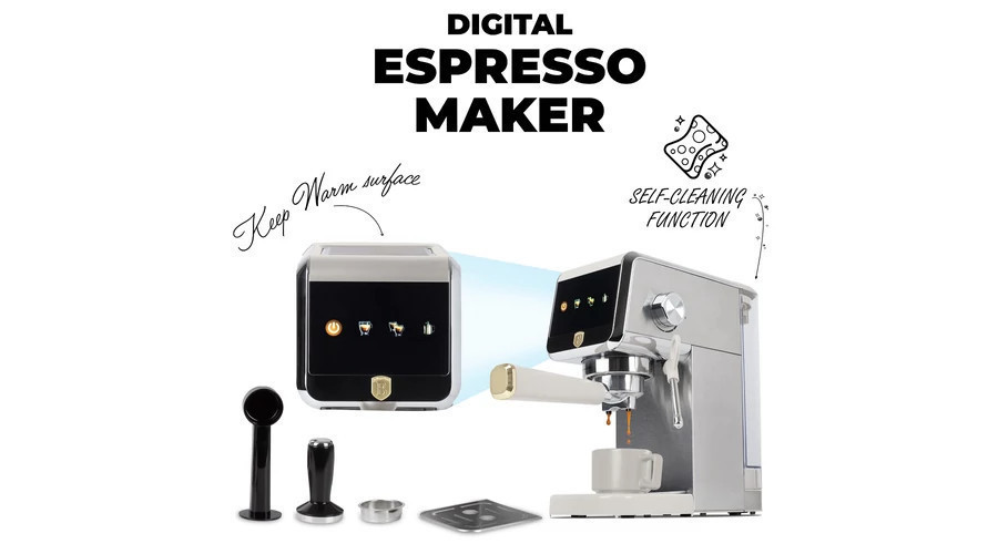 A Berlinger Haus Sahara Collection digitális kávéfőző rozsdamentes acélból készült műanyag házzal.