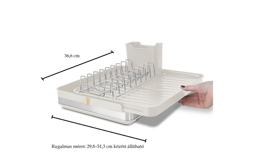 Állítható méretének (29,8–51,3 cm) köszönhetően pontosan annyi helyet foglal, amennyire szükséged van, így kis és nagyobb konyhákban is tökéletes megoldás.