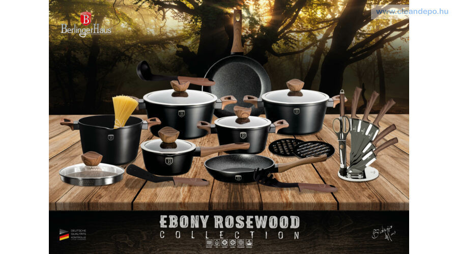 A Berlinger Haus Ebony Rosewood Line kovácsolt alumíniumból készült mély serpenyő három rétegű, gránit-márvány bevonata és a turbó indukciós talp lehetővé teszi, hogy ételei energiatakarékosan és gyorsabban elkészüljenek.