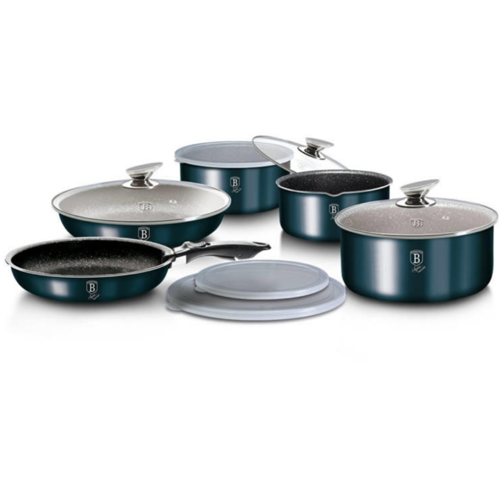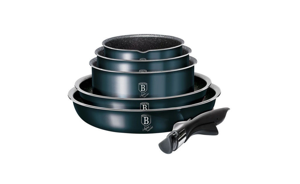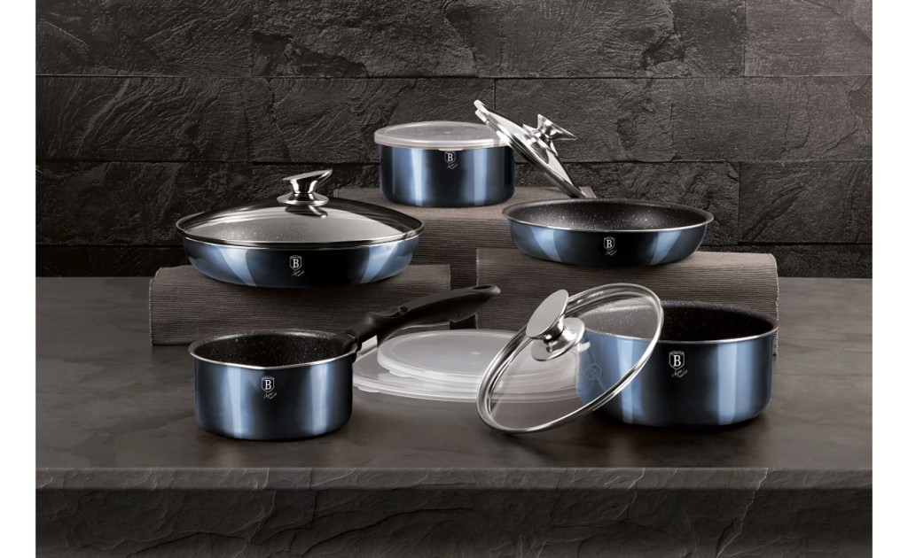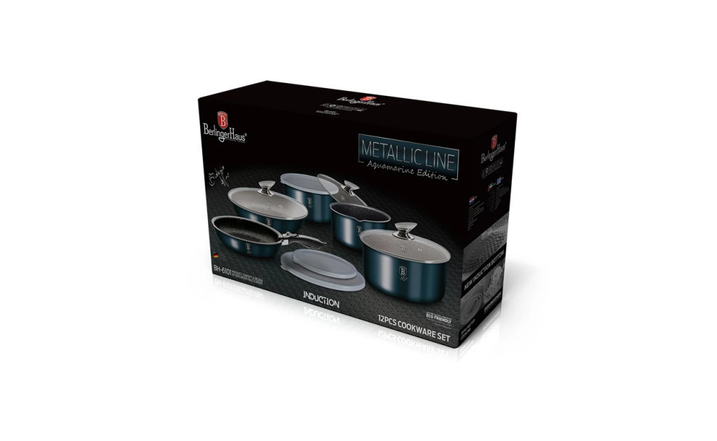 A Berlinger Haus Metallic Line Aquamarine Edition kovácsolt alumíniumból készült edények három réteg márványbevonata és a turbó indukciós talp lehetővé teszi, hogy ételei energiatakarékosan és gyorsabban elkészüljenek.