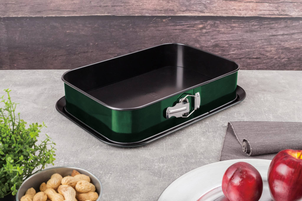 Az Emerald Collection négyzet alakú tortaforma nem csak praktikus, hanem ECO-barát is, hiszen mentes PFOA, LEAD és kadmium anyagoktól. Így nyugodt szívvel használhatod bármilyen sütéshez, anélkül, hogy káros anyagok kerülnének az ételeidbe.