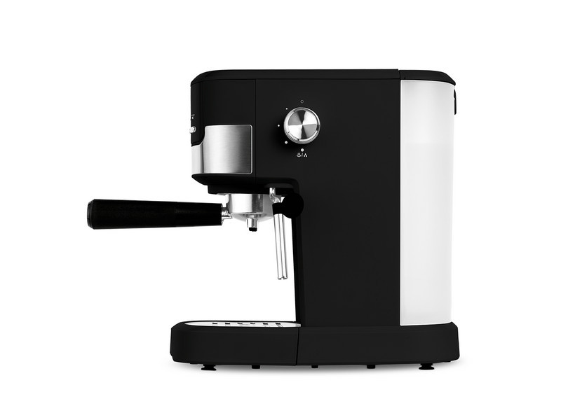 Ez a kávéfőző 1100 wattos teljesítménnyel és 15 bar nyomású pumparendszerrel dolgozik, amely aromás presszókávét biztosít. A készülék gyorsan felmelegszik, a kivehető 1,25 literes víztartály és a kivehető csepptálca pedig megkönnyíti a használatot és a tisztítást. A nagynyomású habosító funkció segítségével krémes tejhab készíthető, a kettős rozsdamentes acél szűrő és a mellékelt műanyag 2 az 1-ben tömörítős adagolókanál pedig precíz adagolást tesz lehetővé. A készülék túlmelegedés és túlnyomás elleni védelemmel is rendelkezik, ezáltal biztonságosan működik a mindennapokban.