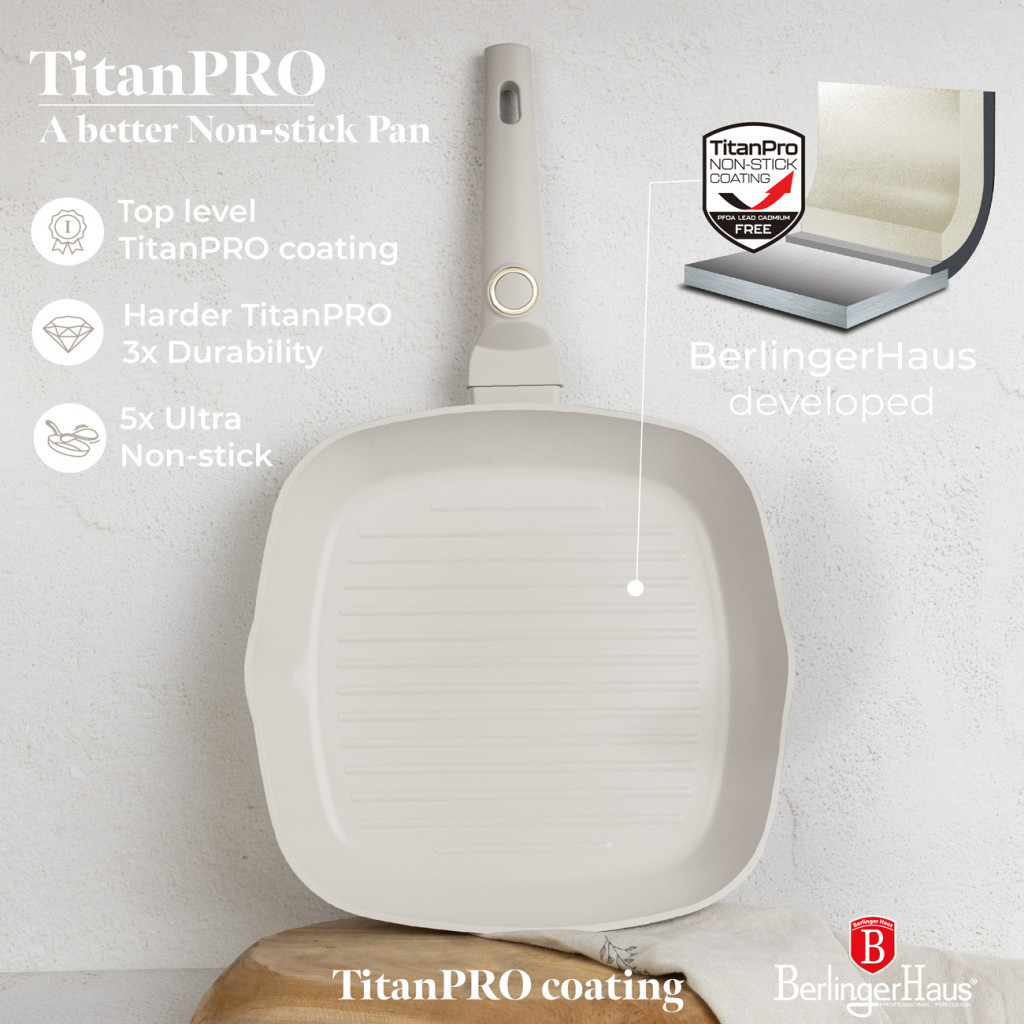 3 rétegű, tartós non-stick titanPro bevonattal ellátott, amely megakadályozza az ételek odatapadását és könnyen tisztítható.