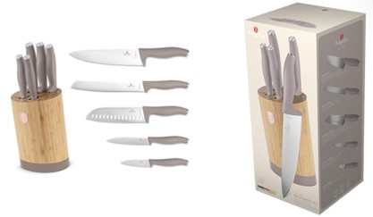 Ezek a kések nemcsak gyönyörűen teljesítenek, de egy csipetnyi eleganciát is adnak konyhájának. A matt szürkésbarna felület és a bambusz állvány látványossá varázsolja ezt a készletet, javítva a konyhája esztétikáját.