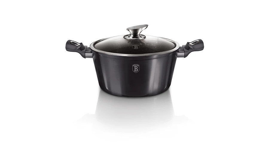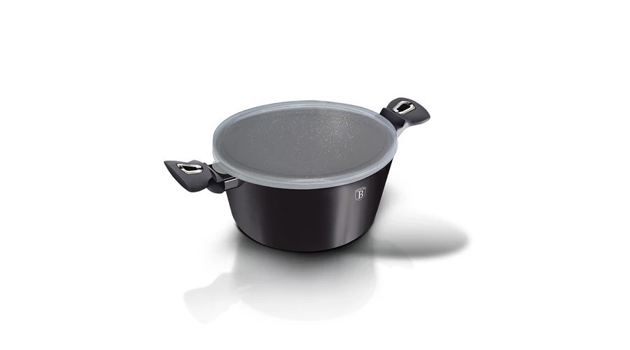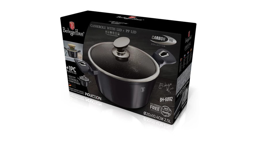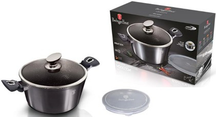 A Berlinger Haus Carbon Pro Collection kovácsolt alumíniumból készült magas lábas három rétegű márványbevonata és a turbó indukciós talp lehetővé teszi, hogy ételei energiatakarékosan és gyorsabban elkészüljenek.