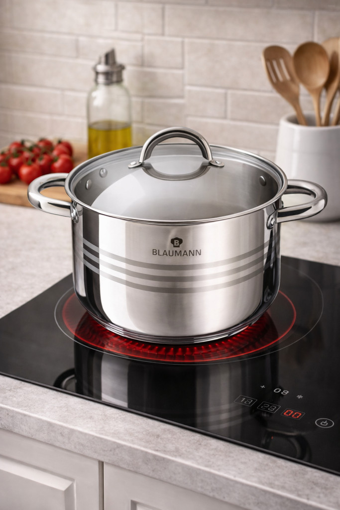 A Blaumann Gourmet Line lábas kiváló minőségű rozsdamentes acélból készült, nagy űrtartalmával ideális családi főzésekhez. Tartós, elegáns és minden típusú főzőlapon használható.