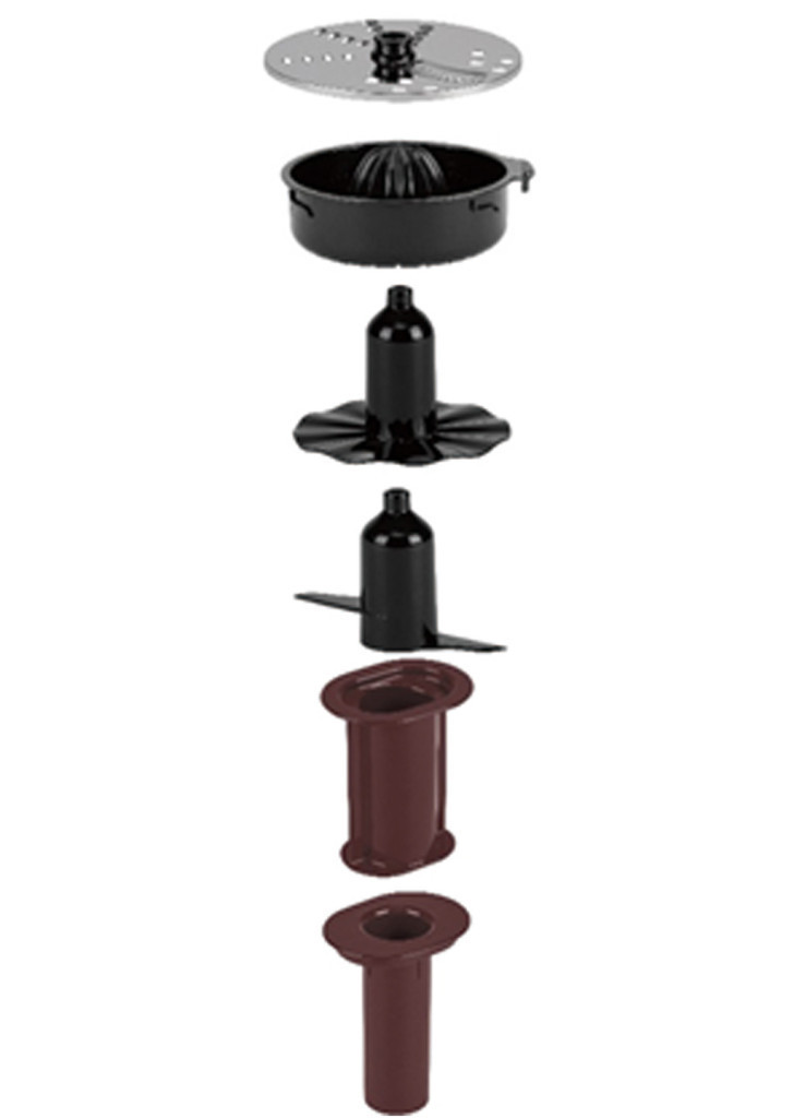 A robotgép tartalmaz egy rozsdamentes acél aprítópengét, egy 2 oldalas rozsdamentes acél szeletelő tárcsát, egy 1500 ml műanyag turmix kancsót eltávolítható kupakkal, egy emulgeáló korongot, egy dagasztófejet, egy citromfacsarót és egy 1000 ml aprítótálat/tartályt.