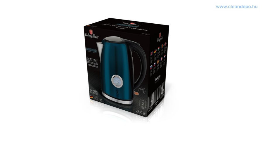 Berlinger Haus Metallic Aquamarine Line rozsdamentes acél elektromos vízforraló termosztáttal, 1,7 liter, 2200 W, sötétkék metál BH-9071