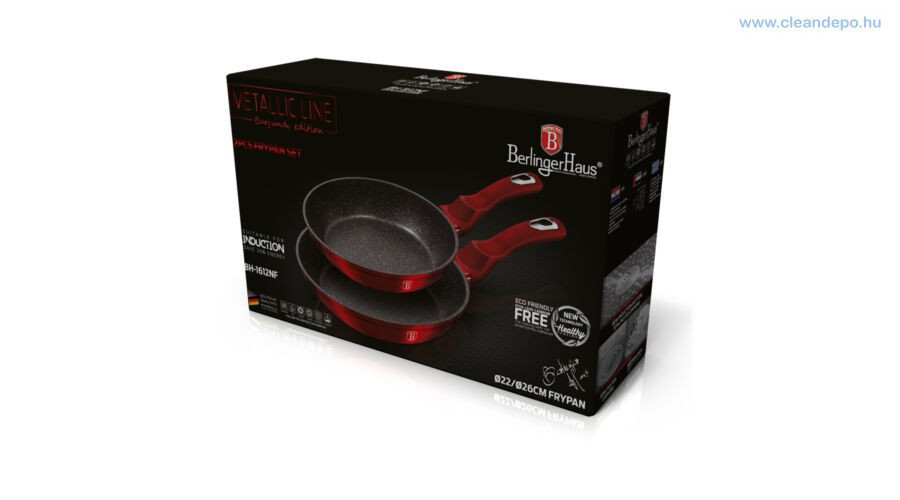 A Berlinger Haus Metallic Burgundy Line kovácsolt alumíniumból készült serpenyők három rétegű márványbevonata és a turbó indukciós talp lehetővé teszi, hogy ételei energiatakarékosan és gyorsabban elkészüljenek.