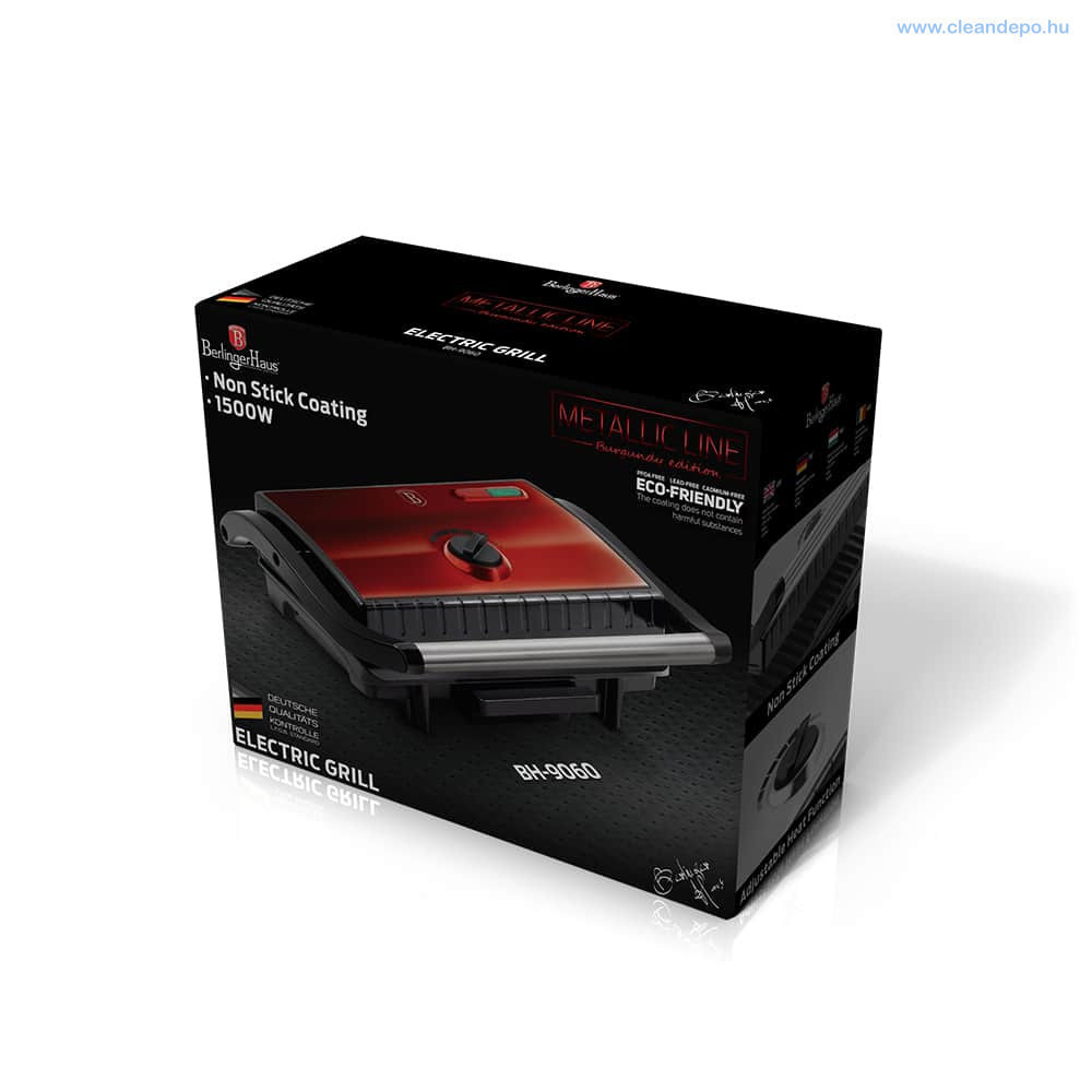 A Berlinger Haus Metallic Burgundy Line elektromos grillsütő tapadásmentes titán bevonattal készült.