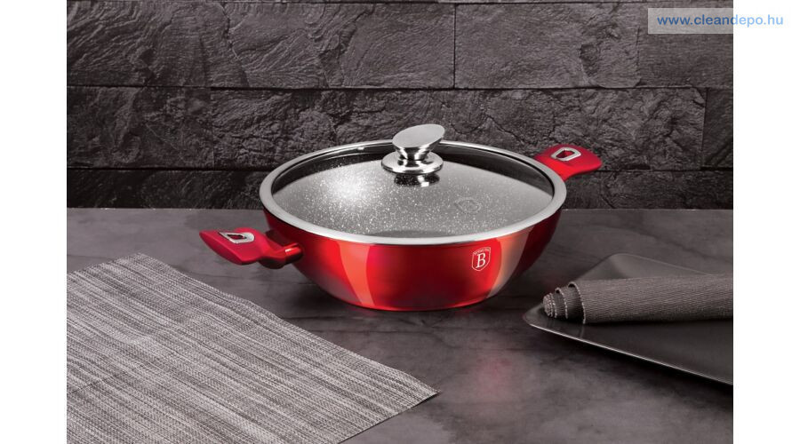Berlinger Haus Metallic Burgundy Line wok fedővel, márvány bevonattal, metál külső bevonattal, 30 cm  BH-7110