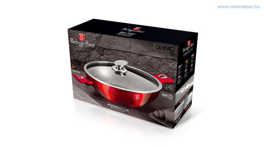 A Berlinger Haus Metallic Burgundy Line kovácsolt alumíniumból készült wok három rétegű márványbevonata és a turbo indukciós talp lehetővé teszi, hogy ételei energiatakarékosan és gyorsabban elkészüljenek.