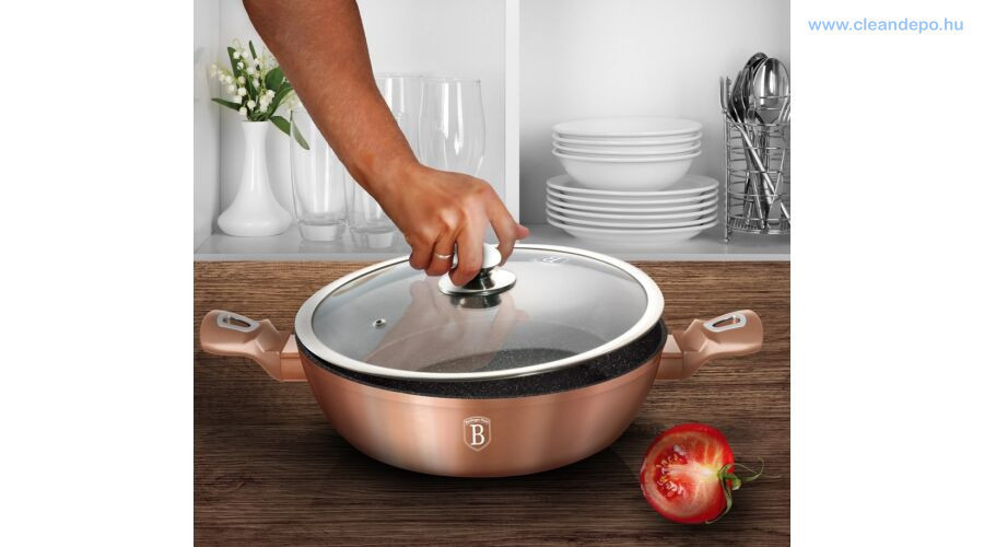 A Berlinger Haus Metallic Rosegol Line kovácsolt alumíniumból készült lábas három rétegű márványbevonata és a turbó indukciós talp lehetővé teszi, hogy ételei energiatakarékosan és gyorsabban elkészüljenek.