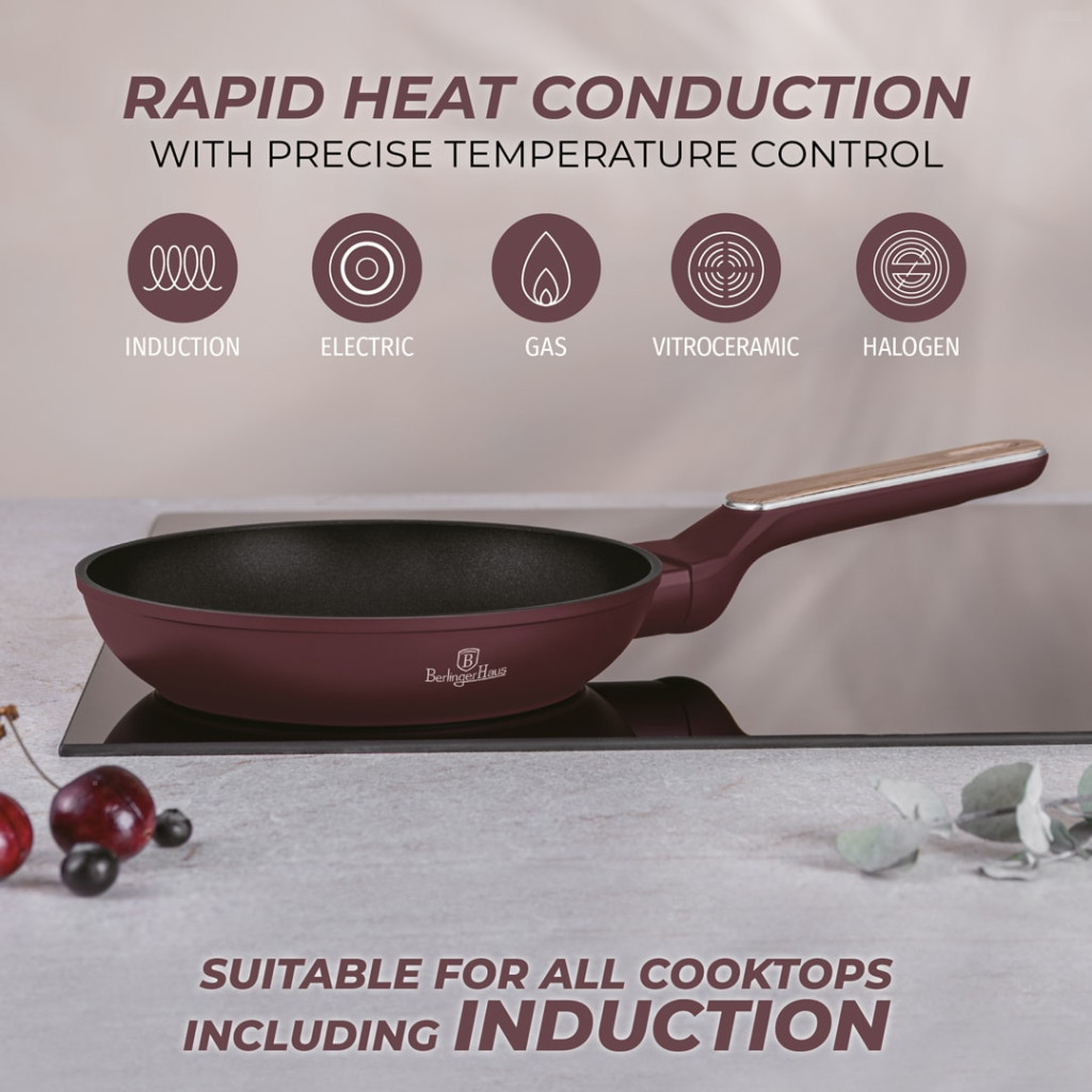 Az elegáns Leonardo Nordic kollekció részeként ez a serpenyő a minimalista skandináv stílust a modern funkcionalitással ötvözi. A matt bordó felület gyönyörűen harmonizál az ergonomikus, puha tapintású, fahatású, ezüst betétes nyéllel , biztosítva a kényelmet, a biztonságot és a prémium megjelenést.