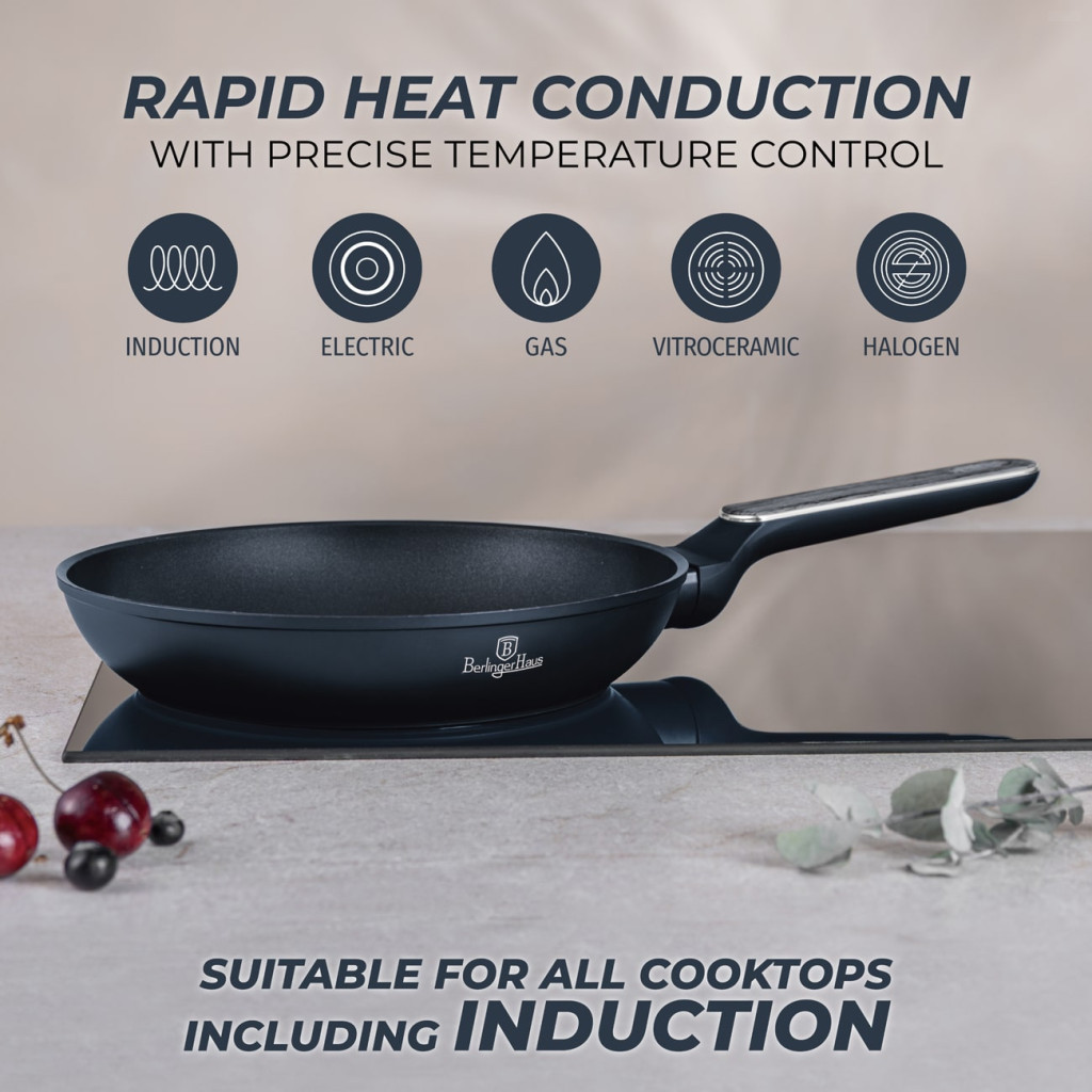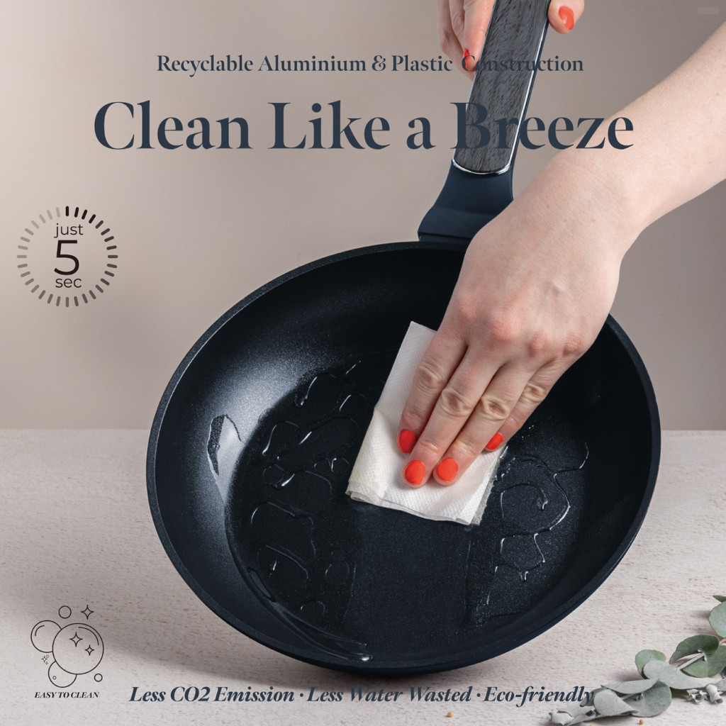 Takarítson meg energiát és főzzen akár 35%-kal gyorsabban a Turbó indukciós talppal, amely minden főzőlappal kompatibilis, beleértve az indukciós, gázos, kerámia és halogén tűzhelyet is. Az ergonomikus, hűvösen tartó, ezüst betétes és szürke fahatású fogantyú kifinomultságot kölcsönöz.