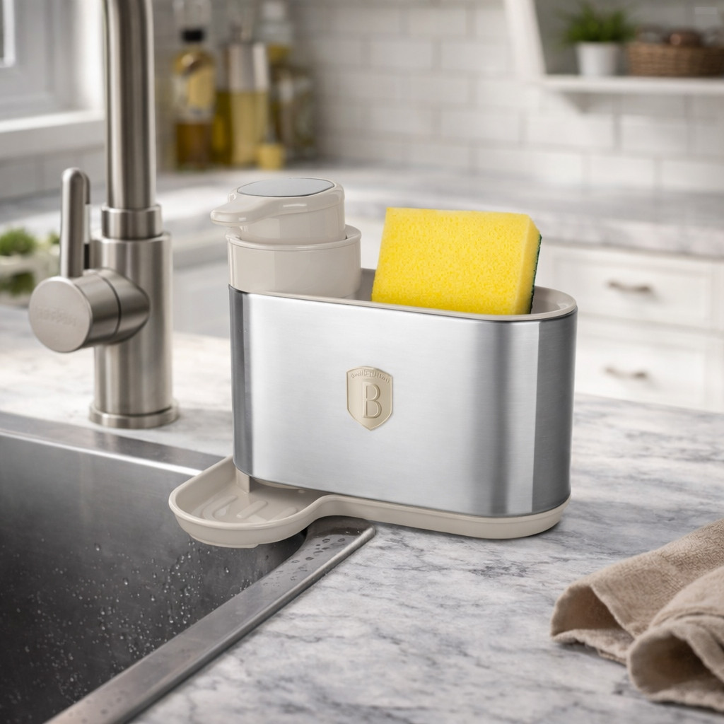 Letisztult dizájn és okos rendszerezés találkozása a Sahara kollekció Berlinger Haus BH8931 szappanadagolójában . Modern konyhákba és fürdőszobákba tervezett prémium 2 az 1-ben szappanadagoló beépített szivacstartóval ötvözi a mindennapi praktikumot, a helytakarékos funkcionalitást és a meleg, minimalista belső terek ihlette kifinomult matt krémszínű felületet .