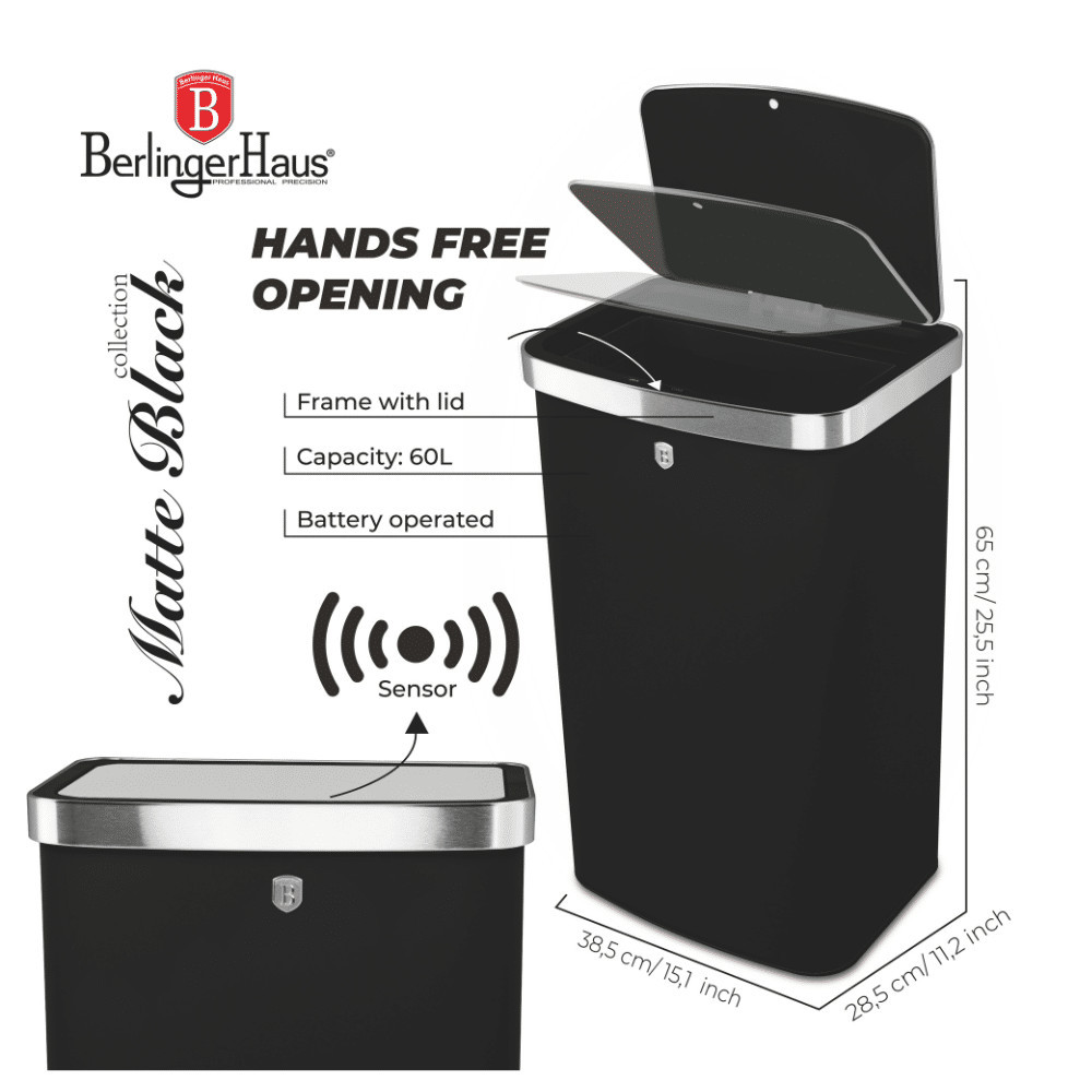 Kiváló minőségű acélból készült , ez a szenzoros szemetes a tartósságra készült. A matt fekete felület letisztult és kifinomult megjelenést kölcsönöz, amely bármilyen dekorációhoz illik – a minimalista modern konyháktól a professzionális irodákig. A dizájn egyszerre stílusos és funkcionális, ellenáll az ujjlenyomatoknak és a karcolásoknak.