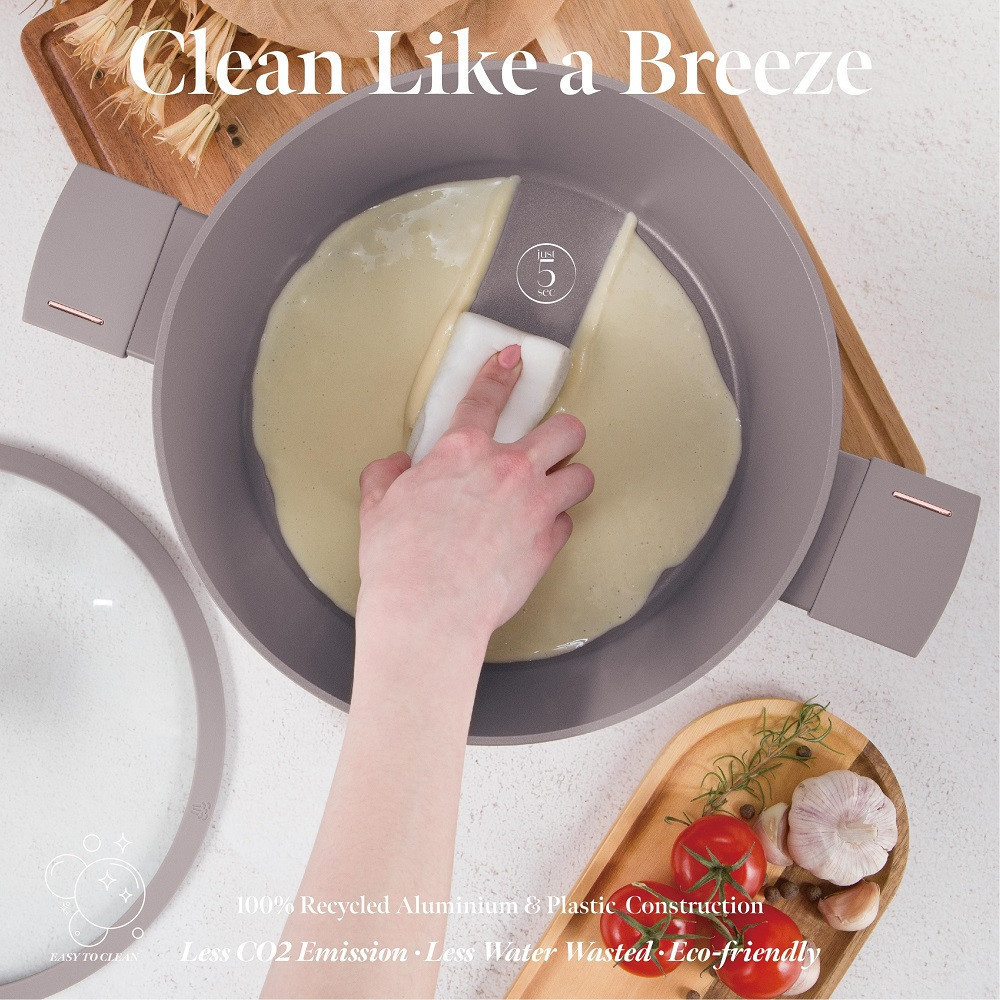 Ez a rakott PFOA-, ólom- és kadmiummentes , ami biztosítja, hogy a főzés biztonságos legyen Ön és a környezet számára. A környezetbarát kialakítás megfelel a modern konyhai szabványoknak, előtérbe helyezve az egészséget és a fenntarthatóságot.