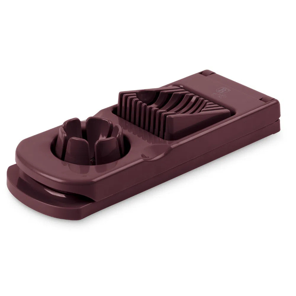 A Berlinger Haus BH7461 tojás- és mozzarella szeletelővel a szeletelés gyors, egyszerű és pontos . A kényelemre és sokoldalúságra tervezett 2 az 1-ben szeletelő segítségével könnyedén vághatja a főtt tojást és a friss mozzarellát csíkokra vagy szeletekre . Matt bordeaux felülete stílusossá teszi konyháját , miközben praktikus funkcionalitást biztosít az étkezések elkészítéséhez.