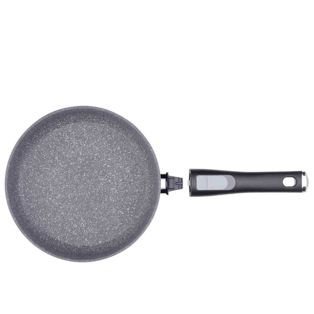 A vulkanikus megjelenésű, extra karcálló PTFE tapadásmentes bevonat lehetővé teszi, hogy az ételek leragadás nélkül süljenek, miközben minimális olaj vagy zsiradék felhasználása is elegendő. Ennek köszönhetően egészségesebb, könnyebb fogások készíthetők benne.