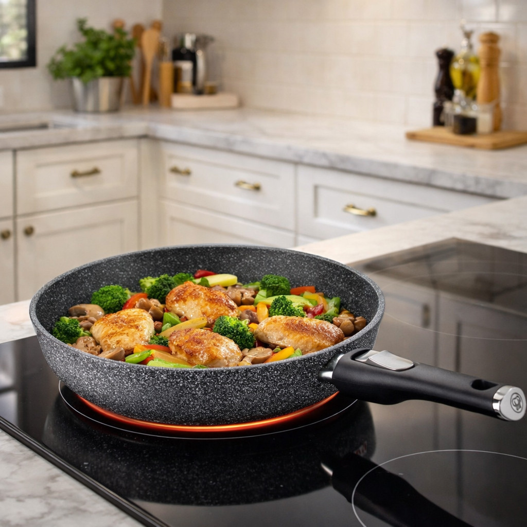 Ideális választás húsok, zöldségek, tojásételek, palacsinta és egyéb mindennapi fogások elkészítéséhez. Tartós kialakításának és prémium bevonatának köszönhetően hosszú távon is megbízható társ a konyhában.