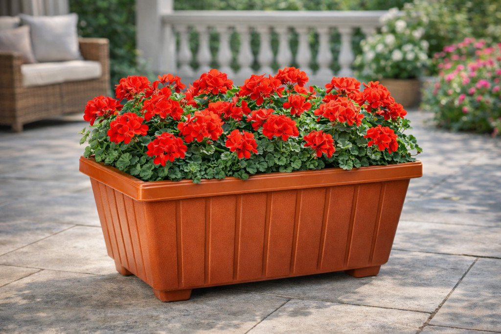 A POLKA 50/30 virágtartó ideális választás balkonra, teraszra vagy kertbe, ha nagyobb méretű, látványos virágkompozíciót szeretne kialakítani. Praktikus téglalap alakjának köszönhetően tökéletes muskátlik, petúniák, futó- vagy csüngő növények ültetéséhez.