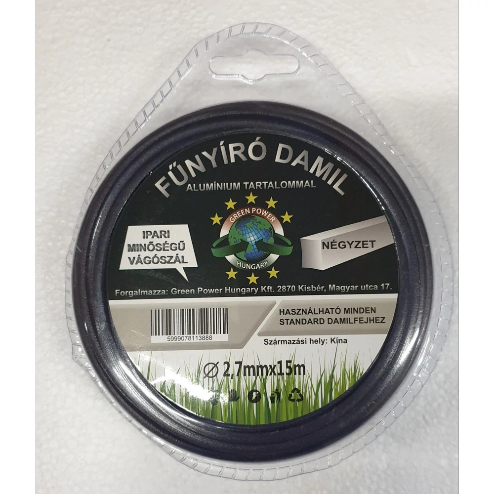Műanyag vágószál alukevert 2,7mmx15 m négyszög