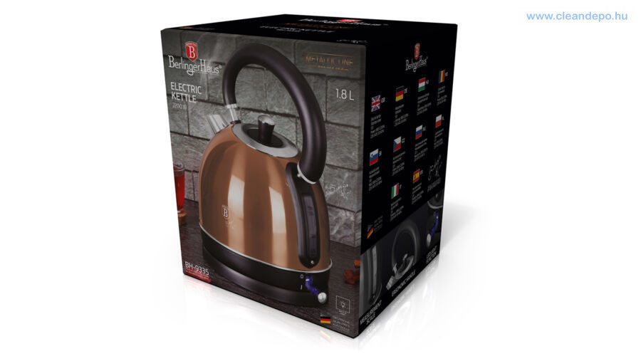A Berlinger Haus Metallic Rosegold Line elektromos vízforraló kanna rozsdamentes acélból készült.