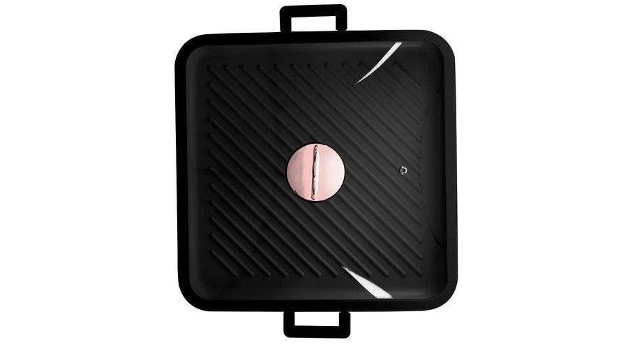 A hőálló üvegfedő fogója rozsdamentes acélból készült, rosegold PVD bevonattal, gőzkieresztő nyílással.