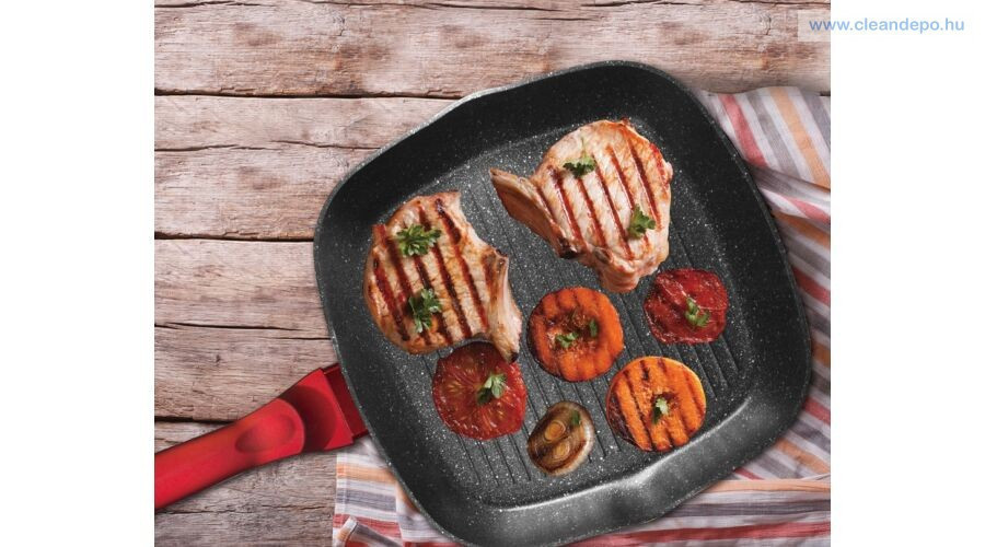 A Berlinger Haus Metallic Burgundy Line kovácsolt alumíniumból készült grill serpenyő három rétegű márványbevonata és a turbó indukciós talp lehetővé teszi, hogy ételei energiatakarékosan és gyorsabban elkészüljenek.